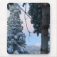 Imagem de árvores de neve que se encontram sobre as montanhas de San Bernardino em direção ao lago de Arrohead (tirada em Twin Peaks, CA, San Bernardino).