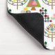 Este mouse pad tem uma design moderna do século médio de árvores de Natal em diferentes estilos. Uma tem uma grade com retângulos com dentro de esteritivos. Outro tem retângulos arredondados com dentro de retângulos menores. Um terceiro tem linhas curvas com estrelas sobre elas. A árvore final é um triângulo com outros triângulos menores dentro