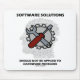 Você encontrou situações em que uma solução de software foi aplicada a um problema de hardware? As calamidades reais podem ocorrer se houver uma mentalidade de engenheiro de software quando o que é necessário é uma perspectiva de engenheiro mecânico ou de construção física. Deixe seu espertino vivo com este mouse pad com ferramentas sobre uma engrenagem sobreposta em cima de uma silhueta de cabeça cheia de código de software junto com o seguinte conselho: "Soluções de software não devem ser aplicadas a problemas de hardware".