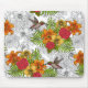 Ilustração vetorial desenhada à mão com várias flores e beija-flor
