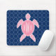 Um presente que caracteriza uma ilustração de uma tartaruga de mar cor-de-rosa. Personalize com seu monograma no escudo da tartaruga. O fundo é teste padrão do quatrefoil dos azuis marinhos.