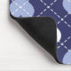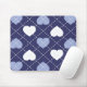 Este mouse pad apresenta um coração azul céu e um padrão de estilo de estilo cardíaco branco.