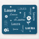 Mousepad Azul Teal com Flores Brancas, proteção personaliza