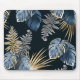 Mousepad Azul tropical e folhas Douradas Design