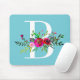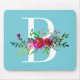Mousepad B Inicial Monograma Floral Cor Personalizada