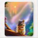 Um adorável pedaço de bebê numa árvore e um fundo arco-íris.