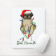 Pug Grumpy de Natal com luzes de Natal embrulhadas. Este pergaminho de um cachorro vai agradar a todos neste Natal.