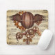 O design de colagem de Steampunk apresenta engrenagens, metal e um balão de ar quente no fundo da folha de música vintage