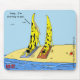 Duas bananas estão tomando sol na praia. A pele de uma das bananas está começando a sair. Legenda: "Dang! Estou começando a descascar."