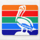 Mousepad com um design com a bandeira da Rua. Petersburgo, Flórida. Uma bandeira com faixas laranja, vermelha, verde, azul e azul marinho com um símbolo pelicano branco