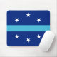 Mousepad com a bandeira de Anaheim, Califórnia. Uma bandeira azul com seis estrelas brancas e uma faixa de azure