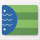 Mousepad com um design com a bandeira de Bellingham, Washington. Uma bandeira verde e azul
