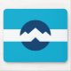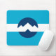 Mousepad com um design com a bandeira de Ogden, Utah. Uma bandeira azul e branca com picos de montanha no centro