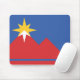 Mousepad com design com a bandeira de Pocatello, Idaho. Uma bandeira azul com montanhas vermelhas e uma estrela amarela