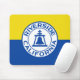 Mousepad com a bandeira de Riverside, Califórnia. Uma bandeira amarela e azul com o selo da cidade no centro