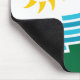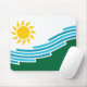 Mousepad com um design com a bandeira de Spokane, Washington. Uma bandeira branca e verde com linhas azuis que simbolizam o rio Spokane e as cataratas Spokane e um sol amarelo