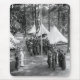 Repro da foto scouting do vintage que mostra o marinheiro que aumenta a bandeira americana no acampamento da escuteira, 1919. Fotografia de Harris & de Ewing. Meio original no LOC: negativo de vidro.