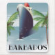 Barbados Cruise poster de viagens com um revestimento oceânico e palmeiras.