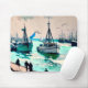 Um bocal com um design de barcos a sair de um porto, possivelmente com a imagem de uma bênção ou de uma figura religiosa em primeiro plano. A imagem poderia evocar um senso de paz, calma e embarcar em uma jornada ou aventura.