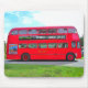 Um belo e clássico ônibus vermelho britânico. Aquarela. Inglaterra Reino Unido.