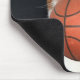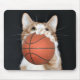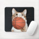Gato de mesa branco e laranja, joga uma pata de mouse no basquete. Excelente para amantes de gatos e amantes de esportes.