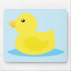 Borracha amarela adorável, pata sobre fundo azul e bolhas de sabão. Design perfeito para o seu quarto ou banheiro.