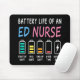 Humorous shift display showing the battery levels of an ED nurse, also known as an emergency department nurse, with colorful levels from start to double shift. Ideal for emergency staff who enjoy relatable workplace humor.