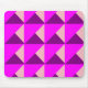 Este mouse pad tem um design Bauhaus de triângulos sobrepostos em roxo, magenta e rosa.