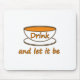"Beba (chá) e deixe que seja" ( © Mira). Referia-me a este slogan de chá numa veia humorada, porque pode escolher ler isto como "Beber e deixar que seja", e como tal aplicar-se a qualquer bebida (mesmo que a xícara e a cor da bebida sugeram chá). No entanto, é sobretudo uma citação para os amantes do chá, que encontram calma, paz e relaxamento numa xícara de chá bem feita.