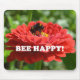 Mensagem bonita para "abelha feliz" com um abelha ocupada coletando pólen de uma flor vermelha brilhante.