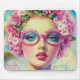 Esta ilustração retrógrada e sonhadora apresenta uma mulher glamourosa em óculos escuros enormes e um boné floral de natação floral florescente, contra um pano de fundo sereno tropical de veleiros e céus azuis. Perfeito para adicionar vibrações de verão e energia feminina ousada aos seus produtos Redbubble, como arte em parede, adesivos ou roupa. Uma celebração vibrante da moda costeira e fantasia floral.