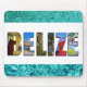 Expresse seu amor pelo país de Belize com este mouse pad contendo fotos de Ambergris Caye, Caye Caulker, e ruínas maias impostas sobre um fundo azul-oceânico tropical.