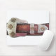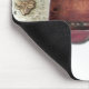 Uma almofada de rato com uma fotografia de uma fivela de cinto de cowboy estrelada prateada e de uma correia de couro de patina vestida