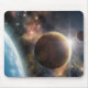 Esperando a liberação em órbita geostacionária para deixar o planeta e explorar novos mundos no espaço. Trabalho de arte digital por Liz Molnar. Planetas, estrelas, nuvens espaciais, luzes foram feitas com efeitos básicos de Photoshop e pincéis, superfícies de planetas criadas de fotos.