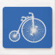 Uma imagem de bicicleta vintage com um centavo de estilo, em branco, em um fundo azul. Uma imagem clássica que nos leva de volta à Era Vitoriana quando o ciclismo ainda era uma novidade praticada por cavaleiros na Inglaterra, França, e nos Estados Unidos, onde eles eram chamados de motociclistas. Adicione seu texto personalizado a esta bicicleta clássica.