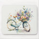 Bicicleta com grande buquê de flores em efeito de aquarela.