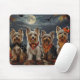Libere o espírito assustador com esta design sombria do Dia das Bruxas apresentando um bando de cachorros sob um céu escuro e iluminado, cercado por morcegos voadores e abóboras brilhantes. Perfeito para aqueles que amam um toque de diversão terrível com seus amigos peludos!