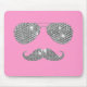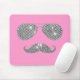 O bigode e os vidros engraçados do diamante no fundo cor-de-rosa bonito A refrigeram o design retro com um bigode engraçado e vidros do geek 80s no fundo cor-de-rosa feminino. A ideia perfeita do presente do humor para ele ou para ela.