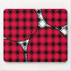 Este mouse pad tem um design moderno do século médio de diamantes negros sólidos traços de diamantes negros dentro com bolhas cor-de-rosa embaixo deles, todos em um campo de branco.
