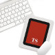 Este design de na moda do mouse colorido tem os elementos clássicos de um quadro retangular geométrico de blocos coloridos em negrito, em vermelho vívido e preto sobre um fundo esbranquiçado. Um modelo de texto é incluído com as iniciais do monograma e o nome para personalizar como quiser. Este olhar é na moda e desportivo, mas simples e moderno com apelo neutro em termos de gênero. Faz uma escolha excelente para voltar à escola, à casa ou ao escritório.