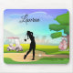 Pasta de Golfe com Golfer Swing, carrinho de golfe rosa e saco de golfe.