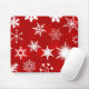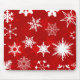 Belo bocal para decorar a tua secretária para o feriado. Flocos de neve vermelhos e brancos sobre fundo vermelho.
