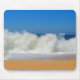 Uma bela vista oceânica de algumas ondas que caem ao longo da costa de uma praia arenosa.