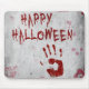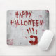 Ilustração assustadora e horrível de Halloween com uma marca de mão ensanguentada e respingos de sangue em um fundo desgastado.