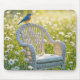 Um pássaro azul pisca elegantemente em uma cadeira mais vadia cercada por um campo de margarida