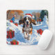 Mousepad Bluetick Coonhound correndo na neve com o Natal