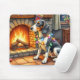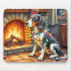 Mousepad Bluetick Coonhound Fireplace with Christmas Lights