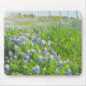 Ao longo de uma estrada traseira no Texas, os bluebonnets alegres enchem a beira da estrada até onde os olhos podem ver. Uma cerca típica de arame farpado do Texas cria um pano de fundo para esta cena rural. Esta pintura a aquarela digital é baseada numa fotografia de Jayne Wilson