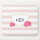 O chic mousepad apresenta um fundo cor-de-rosa e branco, cor-de-rosa e cinza pastel, borda fina de folha de ouro e flores vibrantes cor-de-água rosa. Personalize com seu monograma inicial em letras negras modernas.
