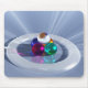 Uma imagem 3D criada em Vue, cheio de reflexões e luzes brilhantes de todas as direções. Cinco esferas coloridas de vidro azul, rosa, turquesa, laranja e diamante permanecem em uma pirâmide cercada por um anel branco translúcido. Eles sentam-se sobre um fundo deslumbrante de raios claros, azuis e brancos que convergem sob as cinco bolas de cristal.